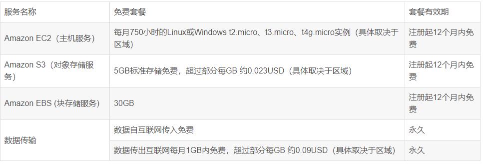 由于亞馬遜云科技服務(wù)種類較多,且計費(fèi)詳細(xì),很多用戶有些看不懂,所以對使用亞馬遜云望而卻步。其實亞馬遜云科技很多服務(wù)都有免費(fèi)套餐,以讓用戶體驗,這些服務(wù)的免費(fèi)套餐,搭建一個私人網(wǎng)盤綽綽有余。由于亞馬遜云海外區(qū)僅需個人信用卡就可以注冊,所以我們以海外區(qū)為例。我們可以從以下鏈接亞馬遜AWS海外區(qū)域賬戶免費(fèi)套餐_免費(fèi)云服務(wù)-AWS云服務(wù) 看到亞馬遜云哪些服務(wù)具備免費(fèi)套餐: